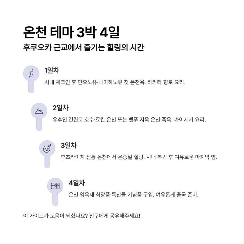 3. 온천 테마 3박 4일: 후쿠오카 근교에서 즐기는 힐링의 시간