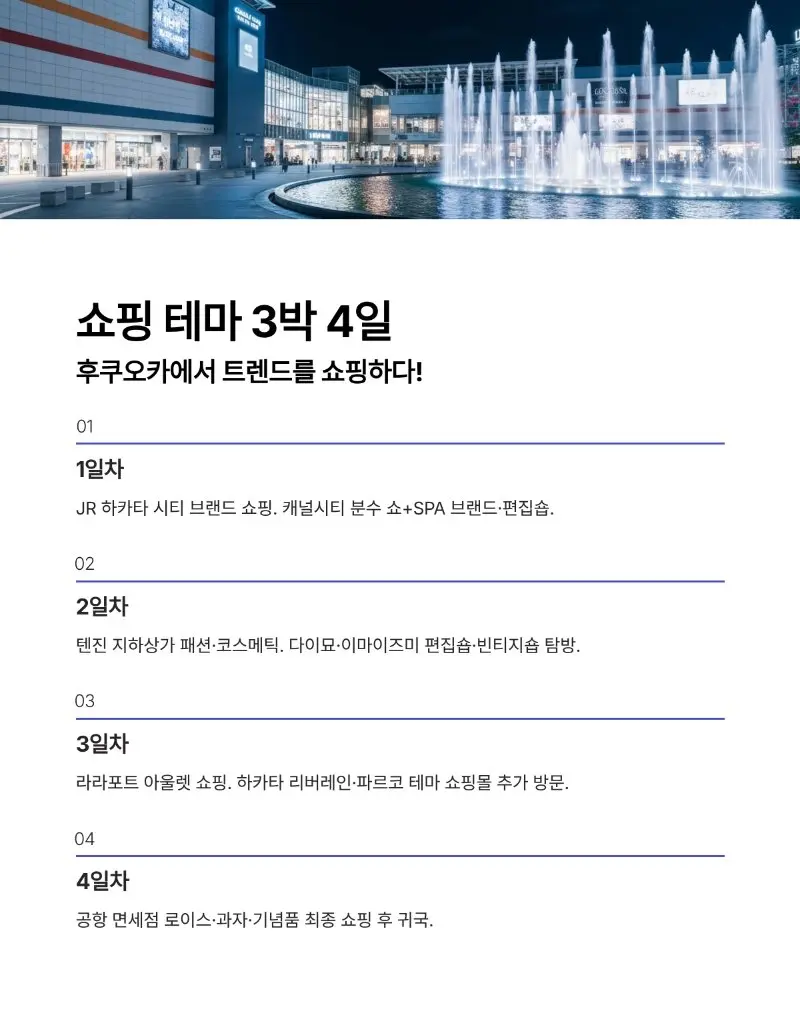 2. 쇼핑 테마 3박 4일: 후쿠오카에서 트렌드를 쇼핑하다!