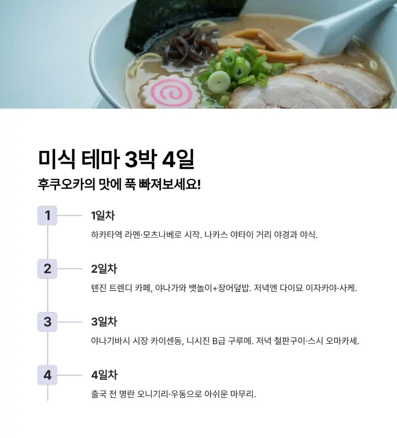 1. 미식 테마 3박 4일: 후쿠오카의 맛에 푹 빠져보세요!